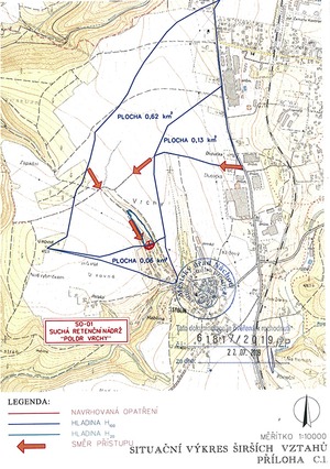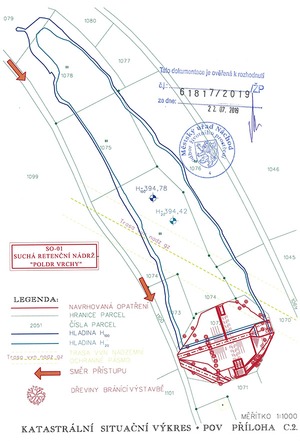 Účelem stavby je zadržení přívalových srážek v krajině takovým způsobem, aby byly sníženy škody na majetku. Stavba je navržena pro transformaci povodňového průtoku Q20. Po úpravách vtoku do zatrubení v intravilánu obce bude bude schopna transformovat průtok Q100.