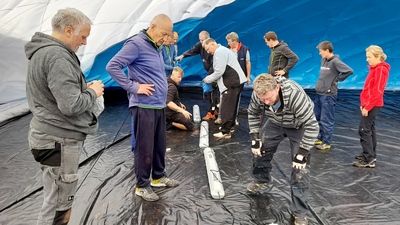 Premiérově jsme „zafoukli“ halu ve čtvrtek 13. října 2022 pod vedením technika dodavatelské firmy. Celkem se cca sedmihodinové práce brigádně účastnilo 22 členů klubu a jejich přátel.
