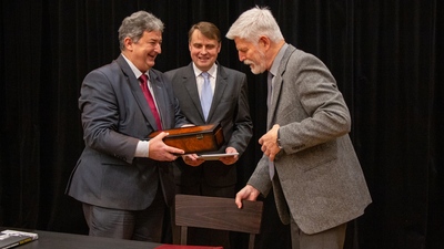 Po skončení besedy se pan prezident ještě nakrátko vrátil do malého sálu, kde se setkal se svými příbuznými.