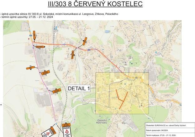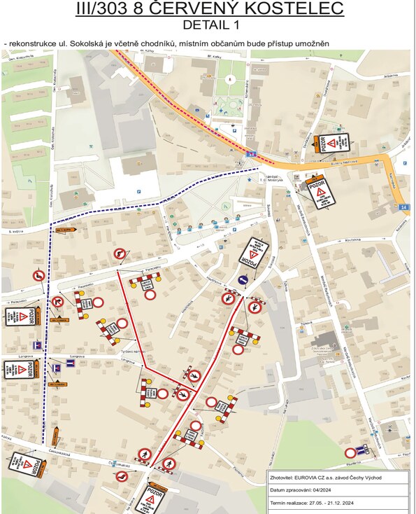 Od 27.května začne platit úplná uzavírka silnice III/3038 ulice Sokolská (od ul. Havlíčkova po křižovatku s ul.Českoskalickou) a ulic Langrova, Zítkova a části ulice Palackého. Uzavírka bude trvat od 27.5. do 21.12.2024. Objízdné trasy pro transit a osobní dopravu jsou vyznačeny v přiložených situacích.